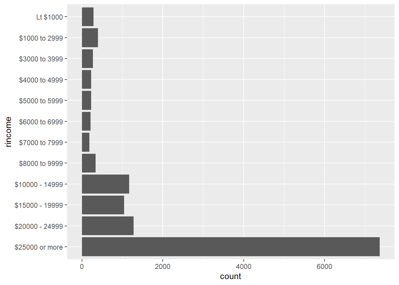 gss_cat |> ggplot(aes(x = rincome)) + geom_bar()